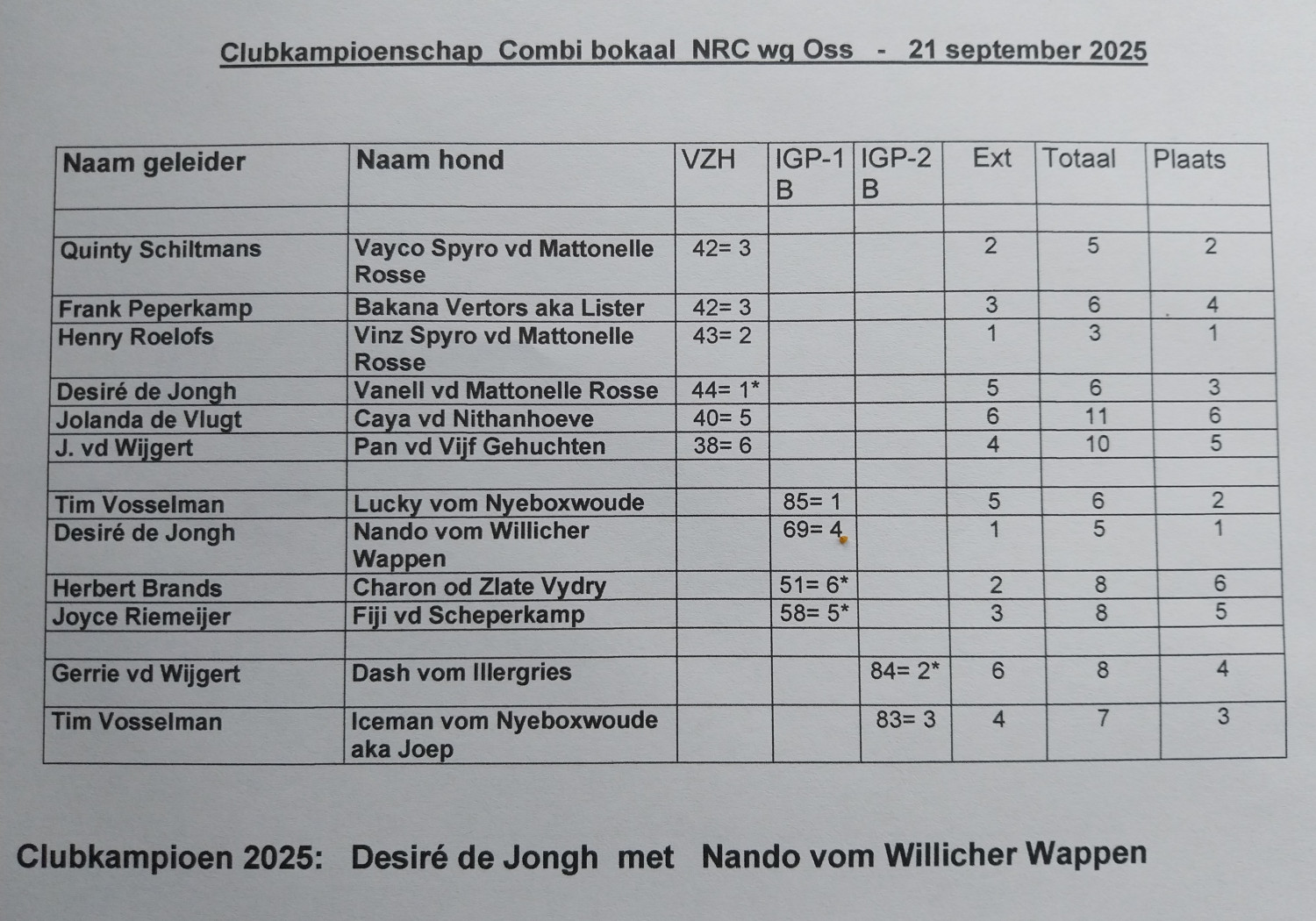 21-09-2025: Uitslag Clubkampioenschap 2025: